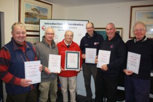 Ashley Hoyland, John Morton, Barry Buxton, Alan Williams, Mike Pole, Bob Smith and Vince Beesley were awarded the Arthur Mullet Trophy for services to model flying within the framework of the Association at the BMFA awards ceremony 2025.